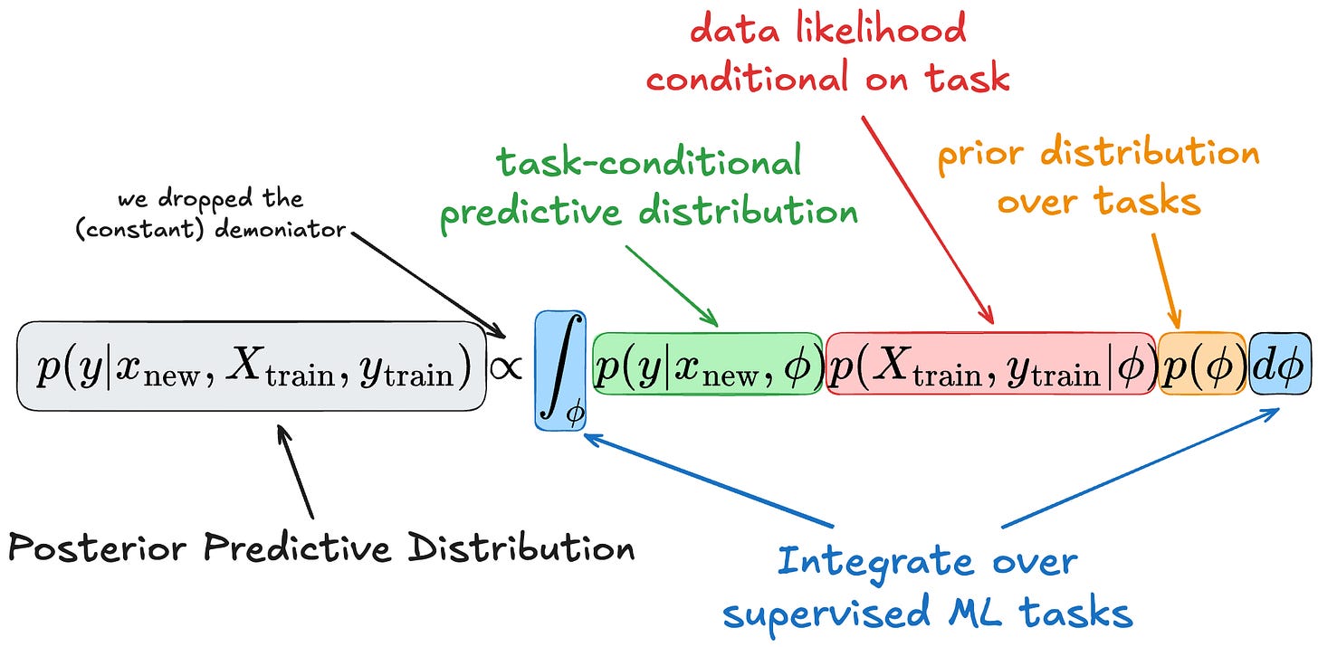 This formula of the posterior predictive distribution is the theoretical foundation of tabular foundation models like TabPFN.