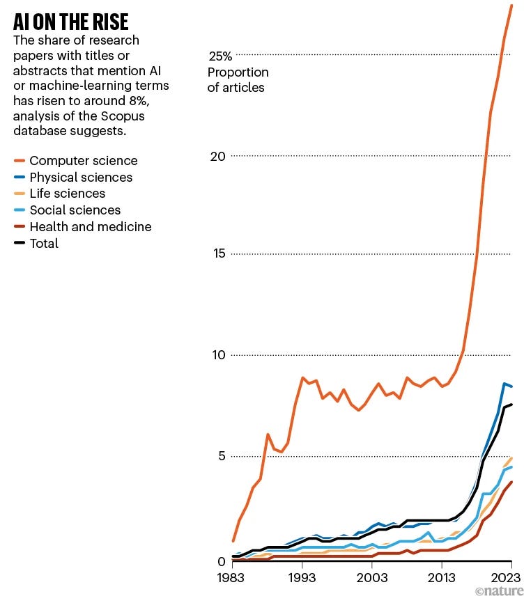The number of research papers that mention AI or ML in the title and abstract is taking off.